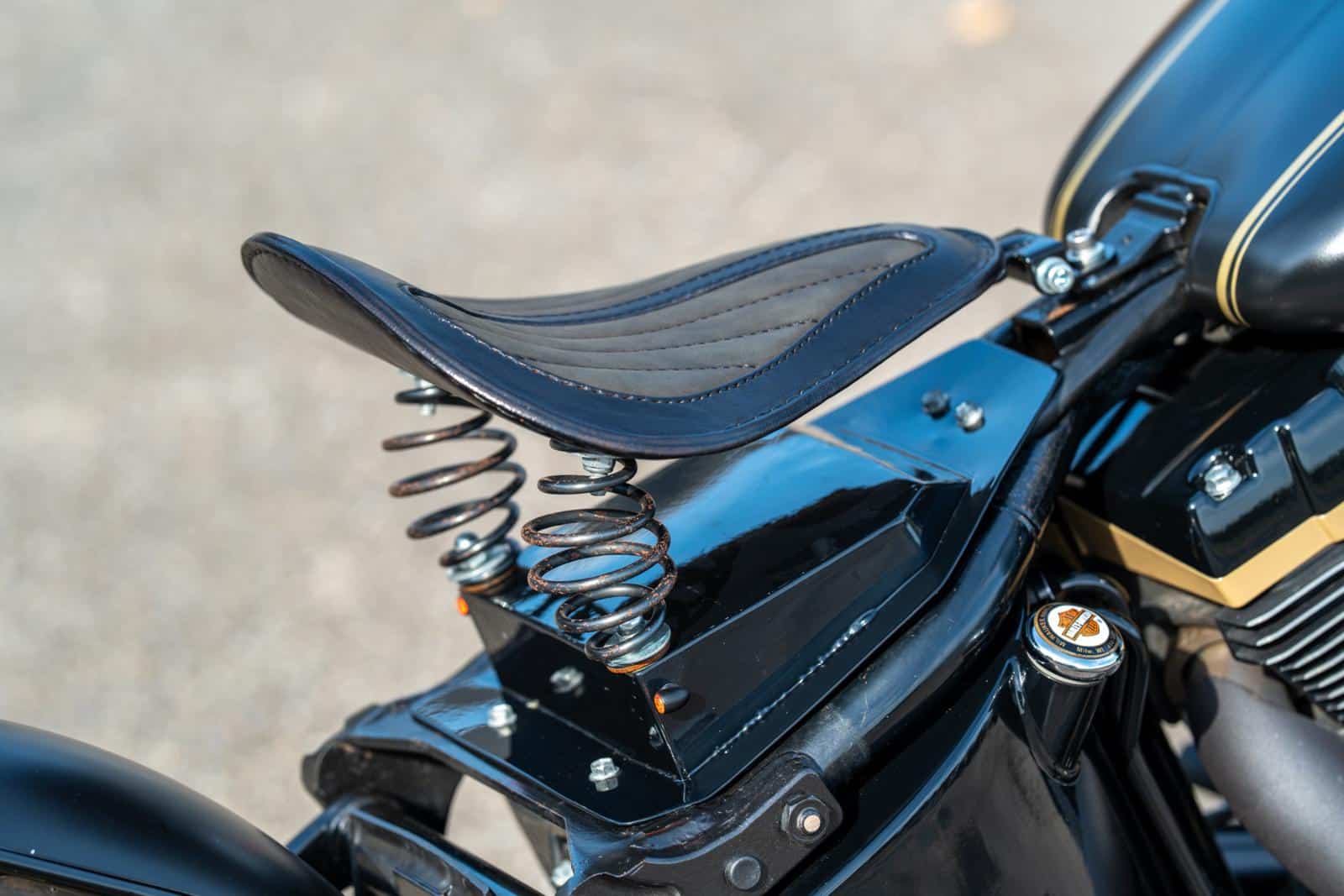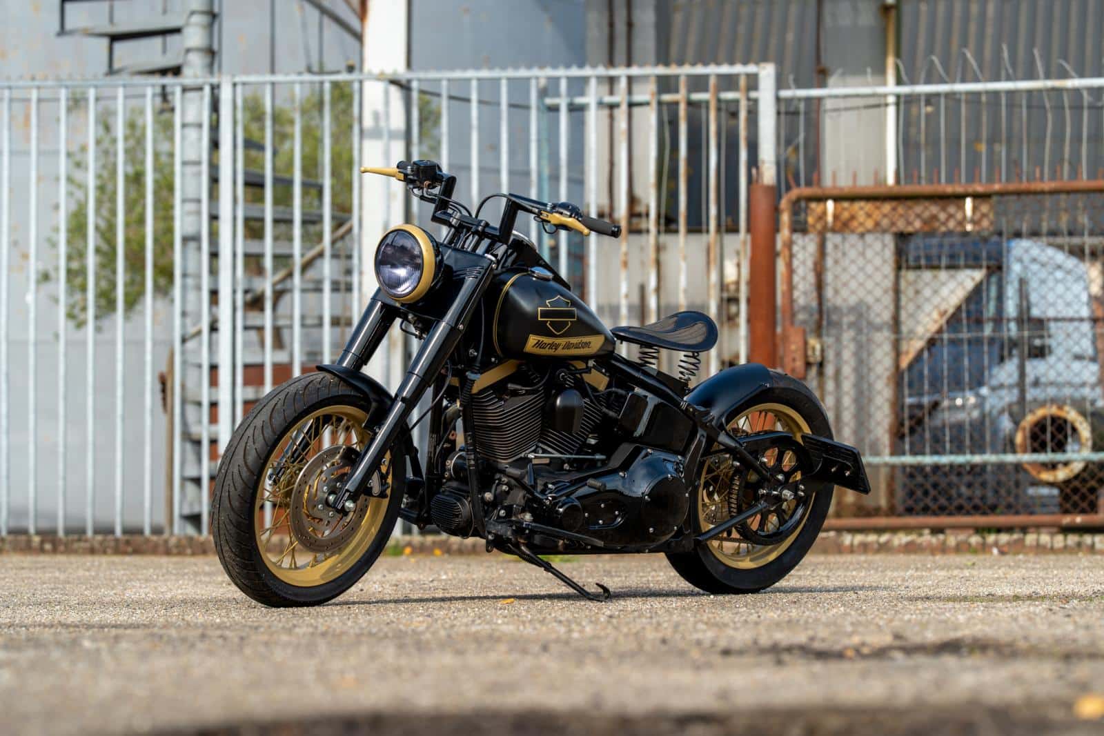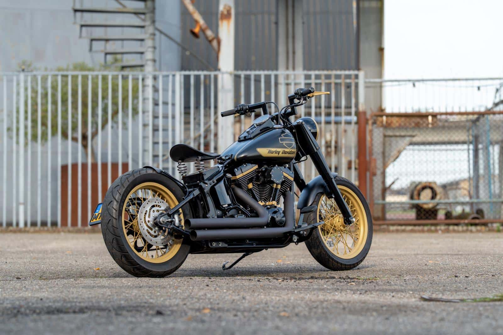 Tom vertelt: “De liefde voor Harley’s kwam pas toen ik op Instagram een verbouwde Softail in Mexicaanse stijl tegenkwam. Niet veel later reden Walter en ik naar een handelaar in het noorden en sleepten we er een mee naar huis.” Met een eigen werkplaats, brug, werkbank en wat handigheid vanuit zijn beroep, kon hij meteen serieus aan de slag. Die eerste Softail kreeg zelfgemaakte, gestretchte spatborden in over-the-top Mexicaanse stijl. Het betekende het begin van een nieuwe verslaving. Tijdens een evenement waarbij Tom aanwezig was met zijn Mexicaanse Softail sprak iemand hem aan. Tom gaf er eigenlijk geen aandacht aan, tot er een half jaar later ineens een appje binnenkwam: ‘Heb je hem nog?’ “Ik had eerst geen idee waar hij het over had”, lacht Tom. “Maar hij bood geld en sneller dan ik ooit had kunnen denken was de deal rond.” Dat onverwachte bericht werd het startschot voor nieuwe projecten. Hij kocht twee originele Softails. Eén daarvan bouwde hij uiteindelijk om tot deze bobber en de andere ging weer de deur uit. Maar eerst kwam er nog een Street Glide tussendoor…