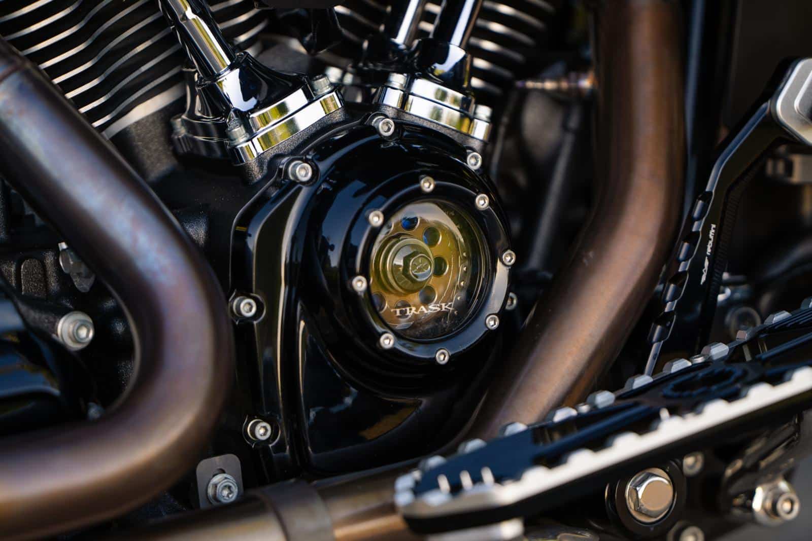 Nu is z’n Street Glide af of in elk geval zo af als een echte bouwer ooit durft te zeggen. “Ik dacht nooit dat ik dat zou menen”, zegt hij lachend. “Maar nu sleutel ik aan de Heritage Softail Evo van m’n vriendin. Zelfde lol, ander project.” We staan bij zijn motor, de zon zakt langzaam en het chroom verandert in goud. Eli tikt op de tank en zegt zacht: “Alles wat ik hieraan heb gedaan is wie ik ben. Geen bullshit. Gewoon staal, zweet en koppigheid.” Inderdaad; dit is geen showbike of standaard Harley, maar een rijdend stuk karakter recht uit z’n ziel gebouwd. Echt een ‘TroubleMaker’ die leeft, ademt en nooit opgeeft. Als Eli wegrijdt trilt de grond opnieuw. Het rauwe gebrul van de Troublemaker snijdt door de lucht terwijl hij verdwijnt in de verte. Een man, een machine en de waarde van alles wat echt telt in het leven van Eli: ‘Fuck It Just Ride!’