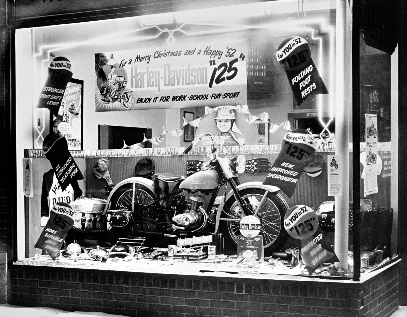 Op de foto – bovenaan dit artikel – uit 1951 zien we de kerstetalage van Harley-Davidson-dealer Knuth Co. aan Milwaukee’s North Fond du Lac Avenue. In het midden een fraaie 125 cc Model S. Een model dat jaren later de bijnaam ‘Hummer’ zou krijgen. Het hoe en waarom van die bijnaam en de achtergrond van H-D-dealer Knuth zijn interessante verhalen die we jullie deze kerst voor willen schotelen.