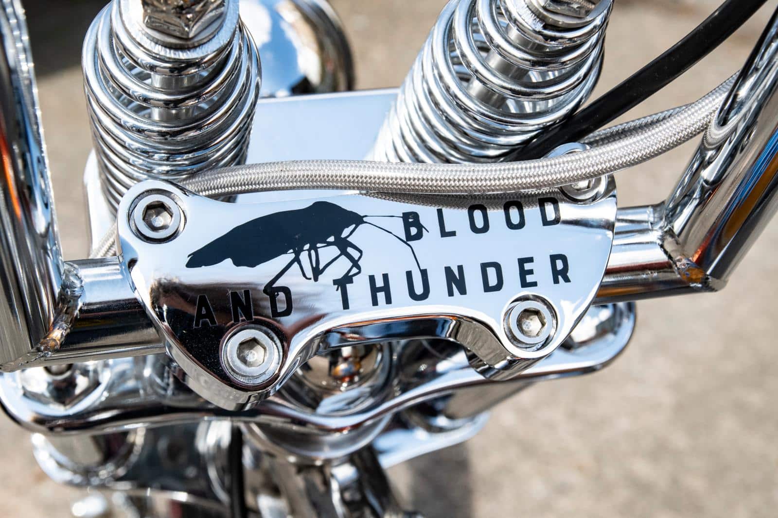 Naast zijn Fogell Customs waarmee hij zich, naast complete customprojecten, ook richt op het bouwen en modificeren van frames voor klanten, runt hij samen met twee maten ook nog het bedrijf ‘Black Moon Choppers’. BMC maakt tal van speciale customparts voor iedereen die niet zomaar iets uit een vuistdikke catalogus op zijn motor wil schroeven. BMC levert tal van coole parts, zoals luchtfilters, voetsteuntjes, een springervork en misschien wel de gaafste kickstarter die er op dit moment te krijgen is.
