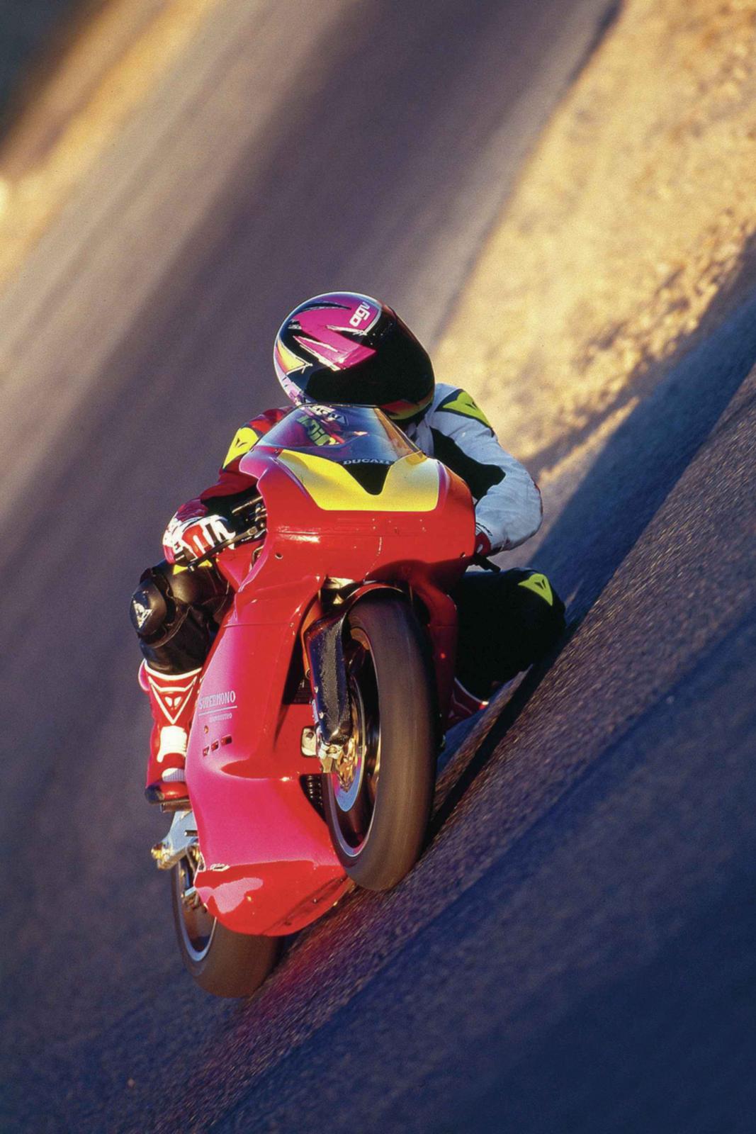 Massimo Tamburini’s 916 zette in 1994 een nieuwe standaard neer qua motorfietsdesign en -techniek. Nog steeds is de 916 een tijdloos mooie motorfiets die innoveerde met zijn enkelzijdige swingarm, uitlaten onder het zitje, het nieuwste generatie Desmoquattro V-twin-motorblok en zijn adembenemend mooie ontwerp. In handen van Carl Fogarty en vele anderen werd de 916/996/998-lijn een WSBK-legende en hét object van begeerte in showrooms wereldwijd. De 916 was meer dan een motor: hij was een designstatement van Ducati en nog steeds is het één van de modellen die Ducati als merk definieerden.