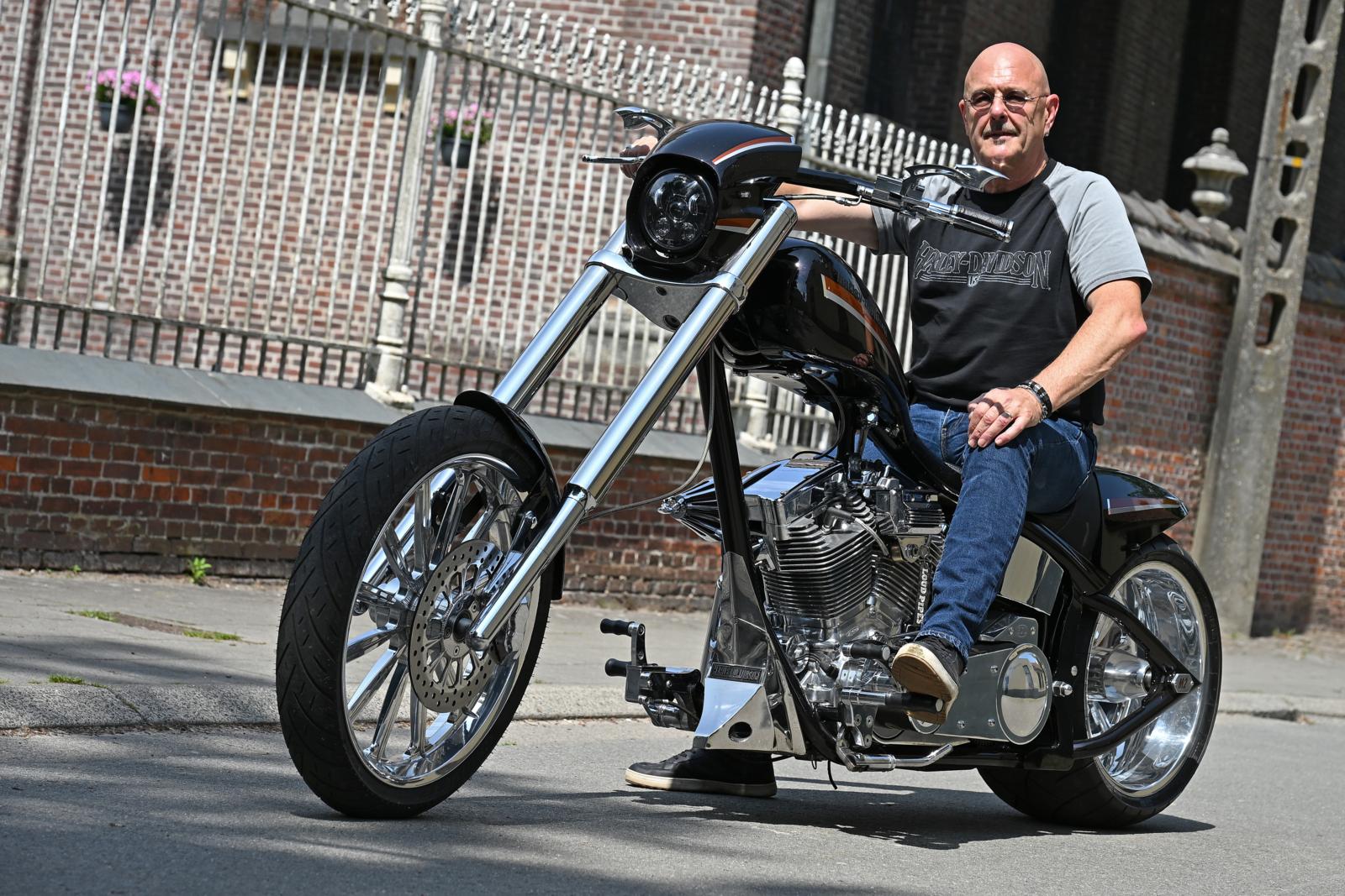 Kris vertelt verder: “Een bevriende restauranthouder uit het Brusselse liet me via een belletje weten dat hij een gele chopper had aangekocht van het meisje dat bij hem in de keuken werkte. Ik moest maar eens komen zien. De jongedame vond de hardtail chopper, met een smalle voor- en dikke achterband, wat raar sturen. Daarom deed ik een bod op de machine, maar dat werd meteen afgeslagen. Toen ik een paar jaar later vernam dat de motor amper gereden werd, ondernam ik een nieuwe poging. Dit keer met ronduit onnozele inzet, maar tot mijn verbazing was de deal meteen geklonken. De machine, die in 1994 in Amerika gebouwd was, werd mettertijd naar Nederland verscheept. Daar had de Brusselse deerne hem jaren later aangekocht. Tijdens het eerste ritje, op het traject naar huis, heb ik nogal wat gekafferd. Met de hardtail viel op de Vlaamse betonbanen en kasseien amper te rijden. Verschrikkelijk, dat kon niet zijn. Bij thuiskomst heb ik het mormel stante pede op de hefbrug gezet. De sluipschijf mocht er vol in…”