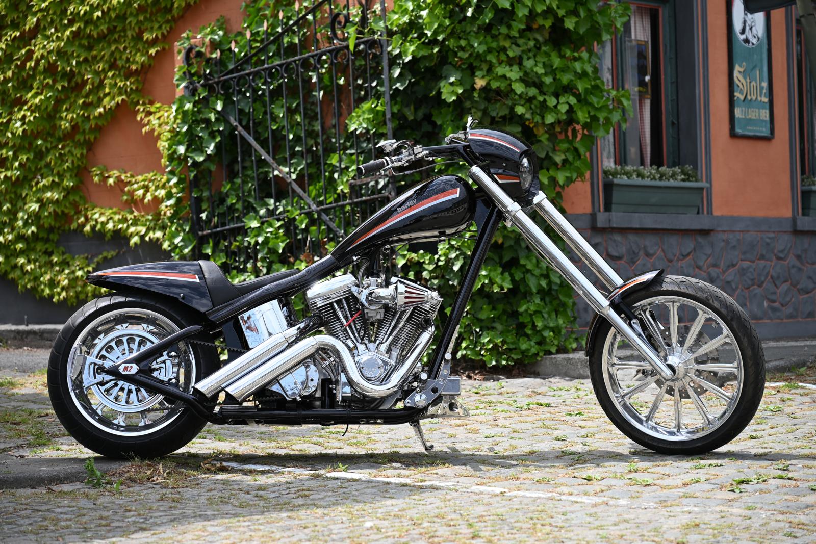 Kris: “Ik had inmiddels opgemerkt dat ik onderweg steeds meer Harley’s tegenkwam. Mijn vrouw schrok zich rot toen ik vertelde dat ik bij een bevriende dealer in Knokke een Fat Boy wou kopen. Toen ik met het geld van de verkochte Goldwing op zak aan de kust arriveerde, moest ik helaas vaststellen dat de vogel al gaan vliegen was. Na een maandje zonder motor, heb ik dan maar de Fat Boy van een vriend afgekocht. Het eerste ritje was een regelrechte teleurstelling. Dat veerde en remde niet als mijn vertrouwde Honda en ik zat me voortdurend af te vragen waar ik in hemelsnaam aan begonnen was. Desondanks vertoefde ik steeds meer in de entourage van Harley fanaten en langzamerhand kreeg ik de Harley vibes alsnog stevig te pakken. Op zoek naar wat extra comfort voor mijn motorreizen werd er geswitcht naar een Street Glide. Ik reed doorheen gans Europa, tot Zweden en Noorwegen toe. Mijn vrienden lachten met mijn bakken en wilden er een sticker van Ijsboerke opkleven. Ze waren echter wel onder de indruk van het comfort en wat later reden ze allemaal op zo’n ‘bakfiets’ rond. De volgende stap was een Road Glide, een machtige machine waarvan ik er ondertussen al twee gehad heb. Op de superrally’s zag ik constant choppers voorbijschuiven en mijn inmiddels verdrongen highneck chopperdromen begonnen terug de kop op te steken!”