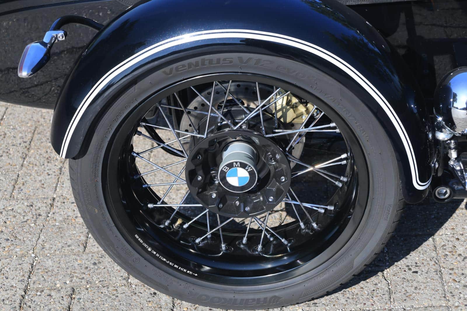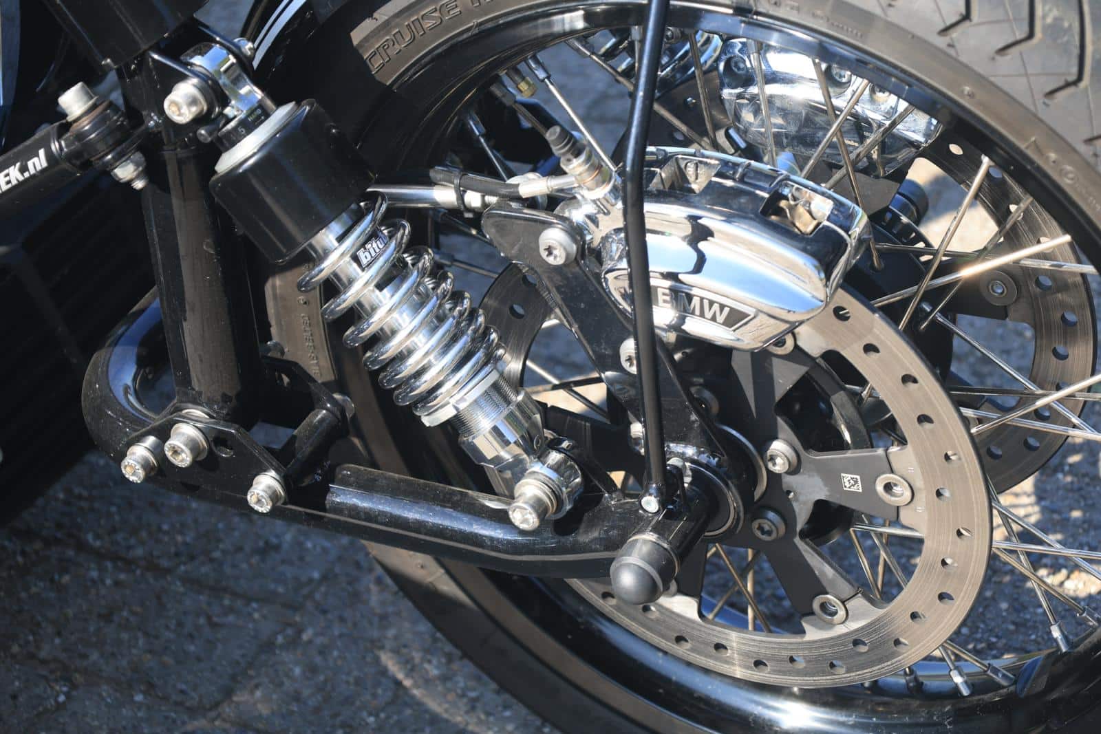 | Zijspanwiel | BMW R nine T met speciaal gemaakte aluminium naaf en autoband |