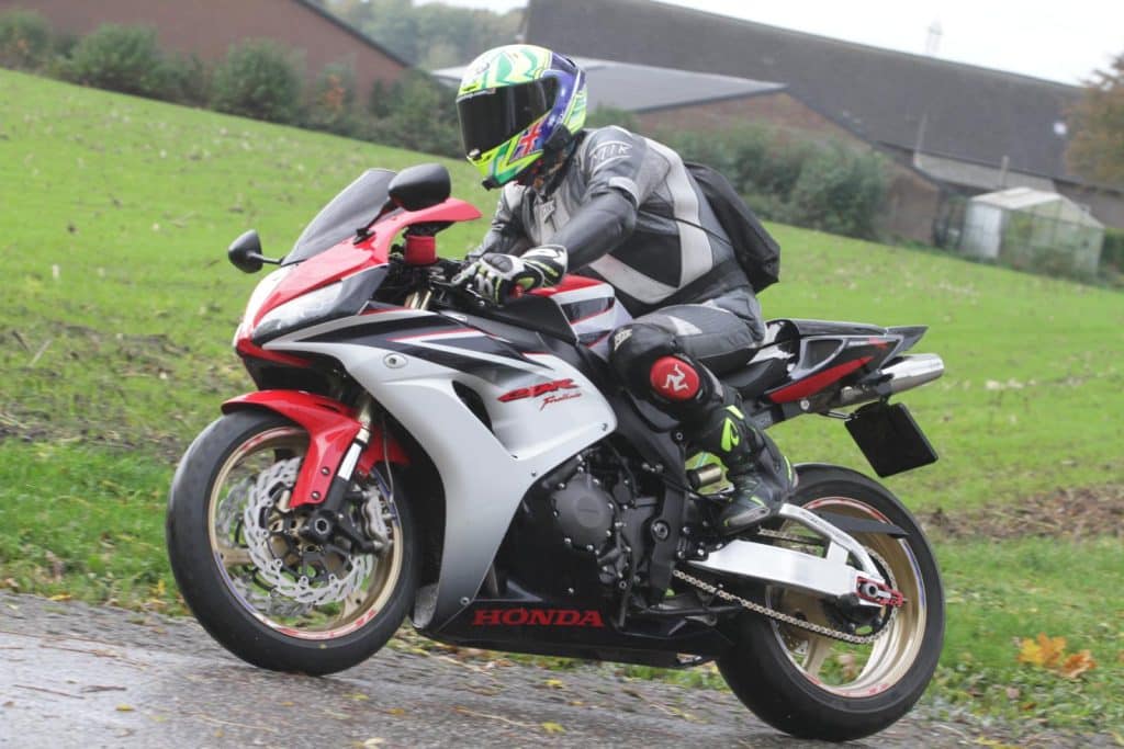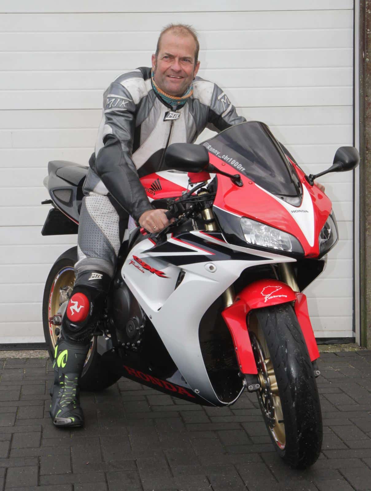 Ronny Strijbos (54) uit het Brabantse Erp was in zijn jeugdjaren veelvuldig te vinden op kleine crossterreintjes in de buurt waar met oude brommers werd gereden. ‘Bromfietsen waren mijn lust en mijn leven en ik was ook wel een beetje een wilde. Het leek me daarom beter om op mijn achttiende maar niet meteen voor een motorrijbewijs te gaan. Auto- en vrachtwagenrijbewijs waren belangrijker. Ik ging werken als vrachtwagenchauffeur. Veel uren maken en weinig vrije tijd. Daardoor verdween het plan om motor te gaan rijden naar de achtergrond. Rond mijn 32e kreeg ik nierproblemen. Dat ging van kwaad naar erger. Gelukkig heb ik vier jaar later een donornier mogen ontvangen. De transplantatie is goed gegaan, qua werk moest ik het wel wat rustiger aan gaan doen. Ik werk nog steeds als vrachtwagenchauffeur, met iets meer vrije tijd. Tijd die ik graag wilde gaan invullen met motorrijden. Ik vertelde mijn vrouw dat ik mijn motorrijbewijs wilde gaan halen. “Dat is goed”, was haar reactie, “maar ik ga niet bij je achterop. Dan ga ik zelf ook motorrijles nemen.” En zo geschiedde het, al waren de artsen die mij behandelden voor mijn nieren minder enthousiast. Die zagen in mij een potentiële donor voor de toekomst. Ik had mijn motorrijbewijs iets eerder dan mijn vrouw en kocht een Yamaha Thundercat. Toen mijn vrouw haar motorrijbewijs had, heeft zij de Yamaha overgenomen en heb ik een Honda CBR600F gekocht. Met die motor heb ik pas echt leren motorrijden. 40.000 km zonder ook maar één probleempje. Na een jaar of vier (2009) ben ik gaan uitkijken naar een andere motor. Ik heb proefgereden op een Honda CBR600RR en een CBR1000RR. De 600 was voor mij goed genoeg geweest, mijn keuze viel toch op de zwaardere uitvoering. Ik vond een bijna nieuwe van 2007 bij Motorcenter Venlo, naar mijn idee de mooiste uitvoering van de Fireblade ooit. Met de uitlaat in het kontje en de prachtige kleurstelling.’