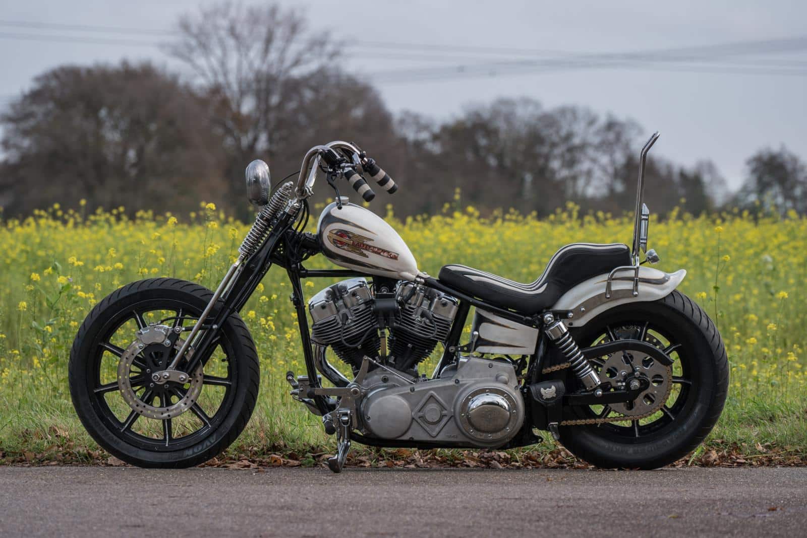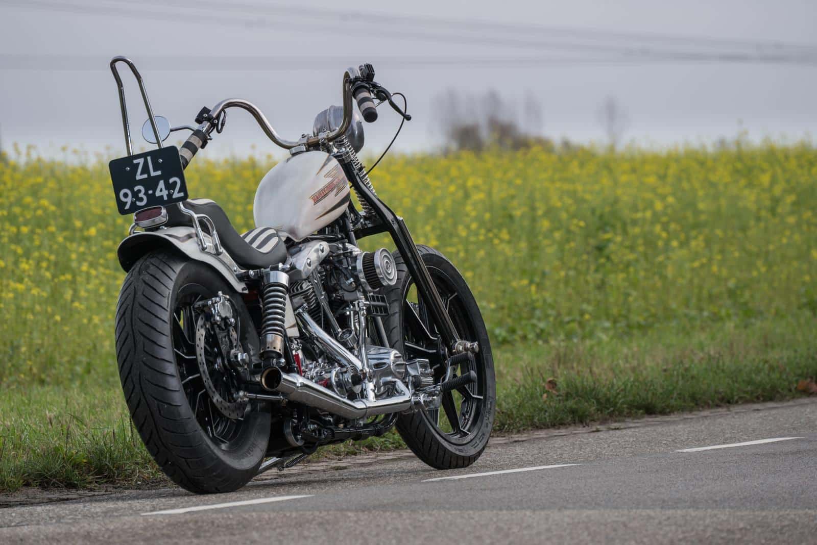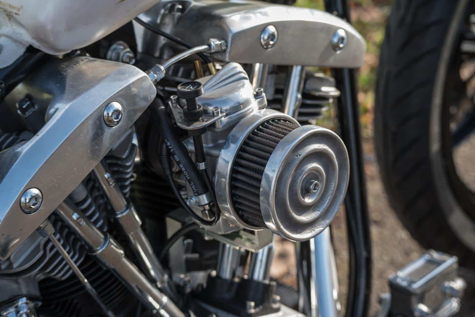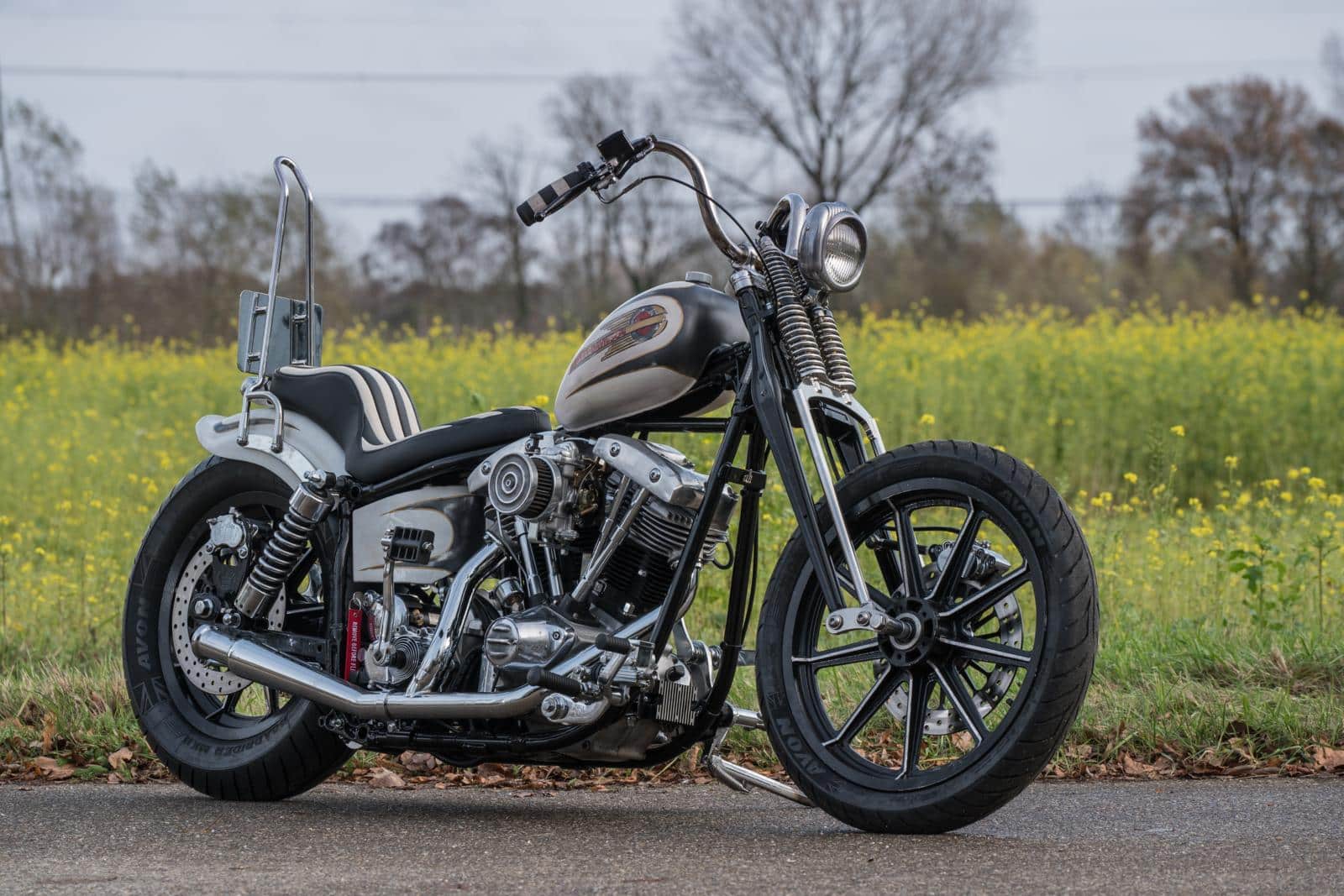 Het idee was helder: een motor bouwen die geschikt is voor lange ritten, maar die ook licht en wendbaar blijft als het terrein verandert in moddersoep. Een klassieke chopper dus, maar wel een die je gebruikt. “Bart’s Bike Shop had nog een mooi gereviseerd Shovel-blok liggen, René had een frame én wat vrije tijd,” vertelt Martine. “Dan is de rekensom snel gemaakt.”