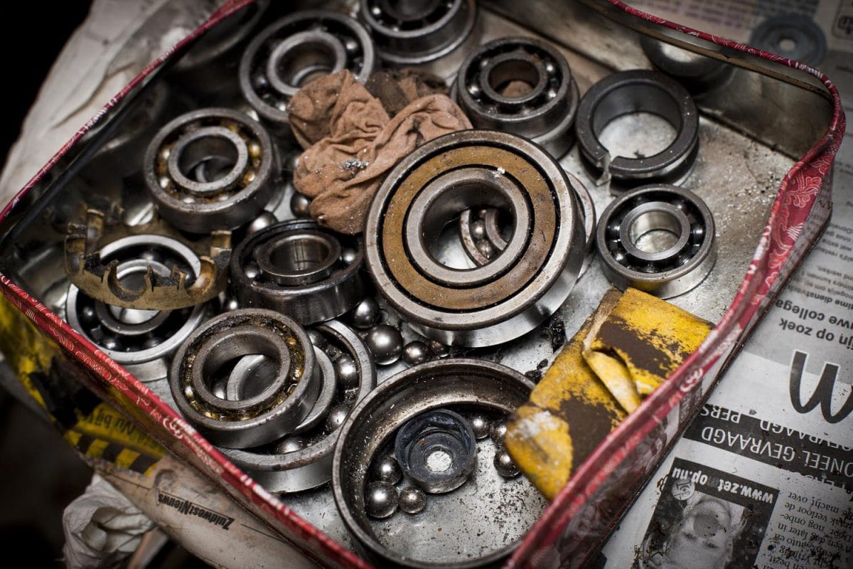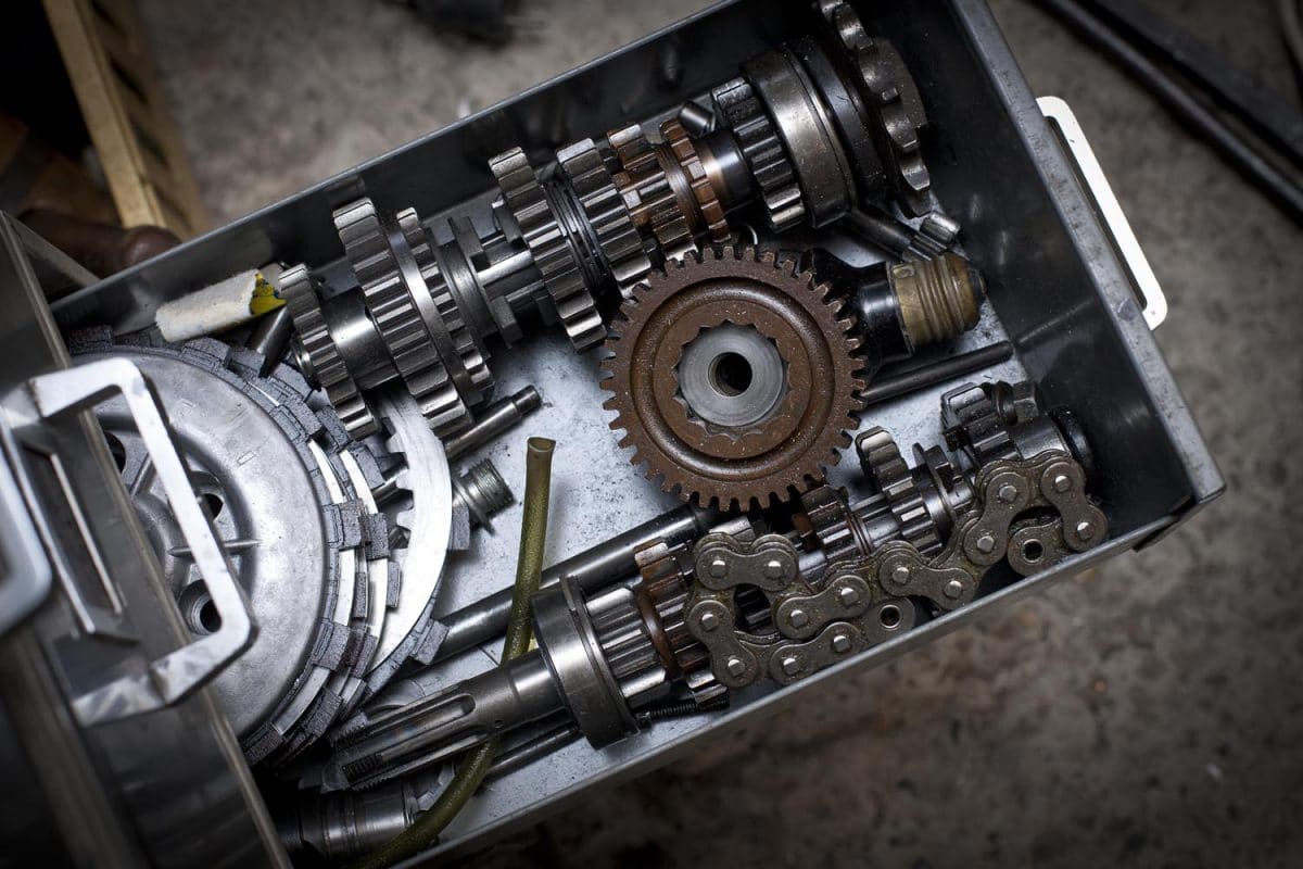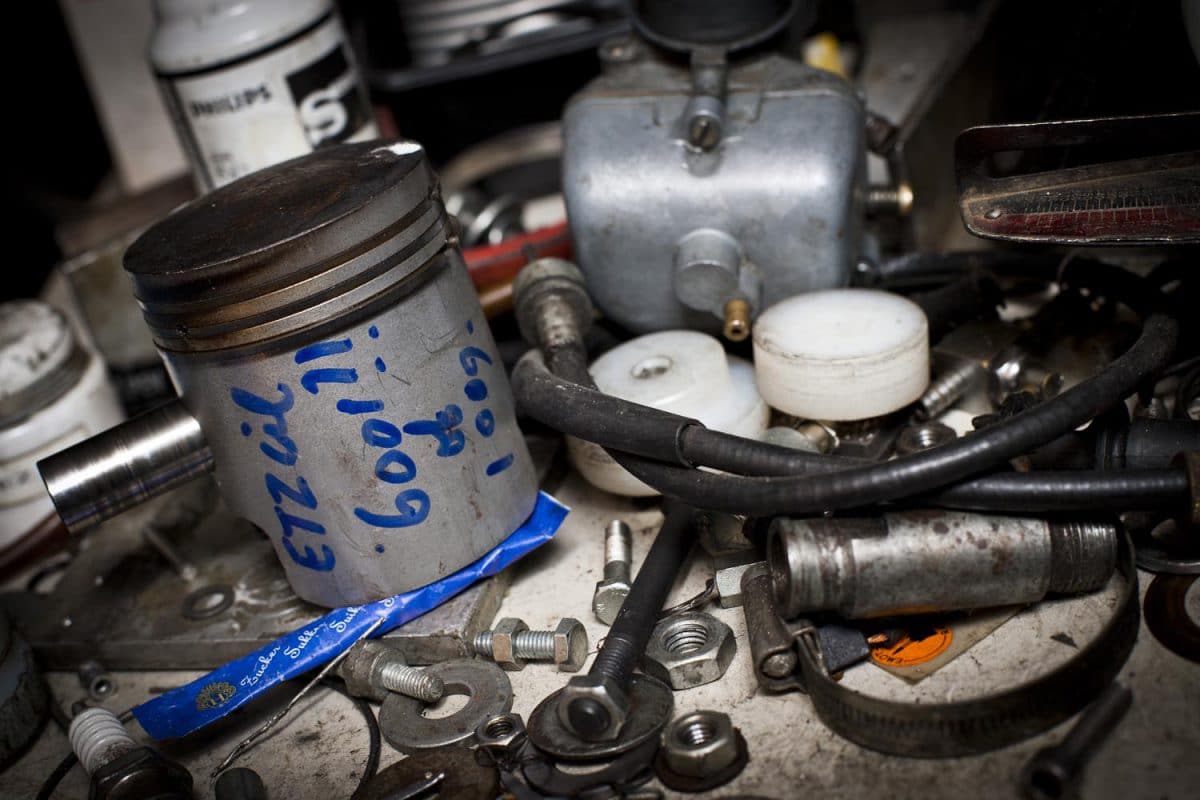 Drijfstangen, lagers, tandwielen, zuigers, technische schema’s, hand- en werkplaatsboeken: Leo Steenks lééft te midden van motorspullen.