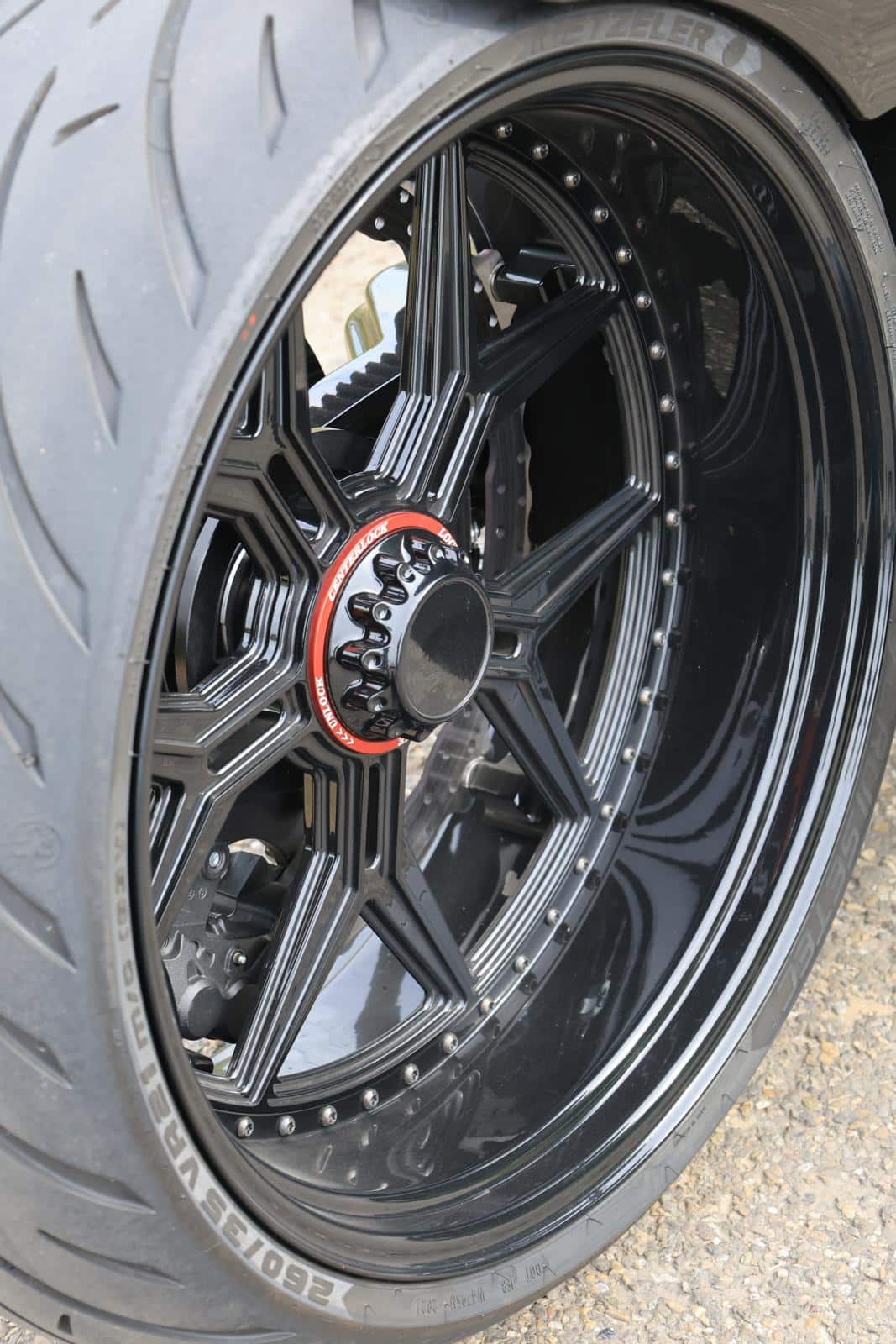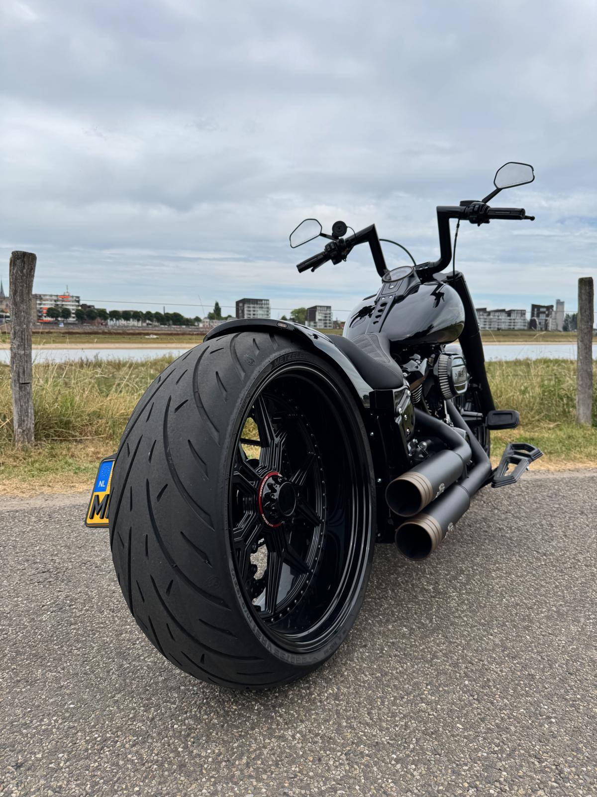 Reinder vertelt: “Wij zijn met Bas gaan bedenken hoe we zijn motor nog mooier konden maken en kwamen als snel op een aantal onderdelen die zeker gebruikt zouden moeten worden; De enkelzijdige achterbrug in combinatie met de hele dikke 21 inch GT wielen en het custom achterspatbord. Ook een volledig instelbare air-ride was een absolute ‘must’ omdat het achterspatbord daarmee bij stilstand tot superstrak boven de achterband zakt, wat een megavette look oplevert.”