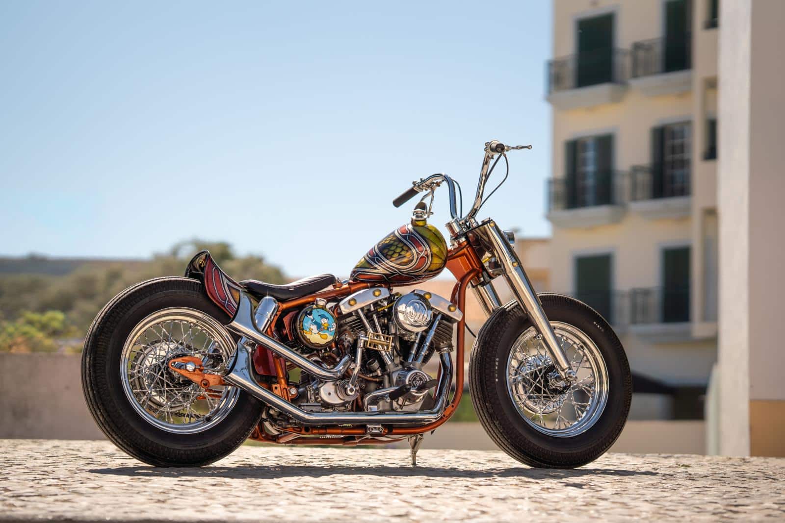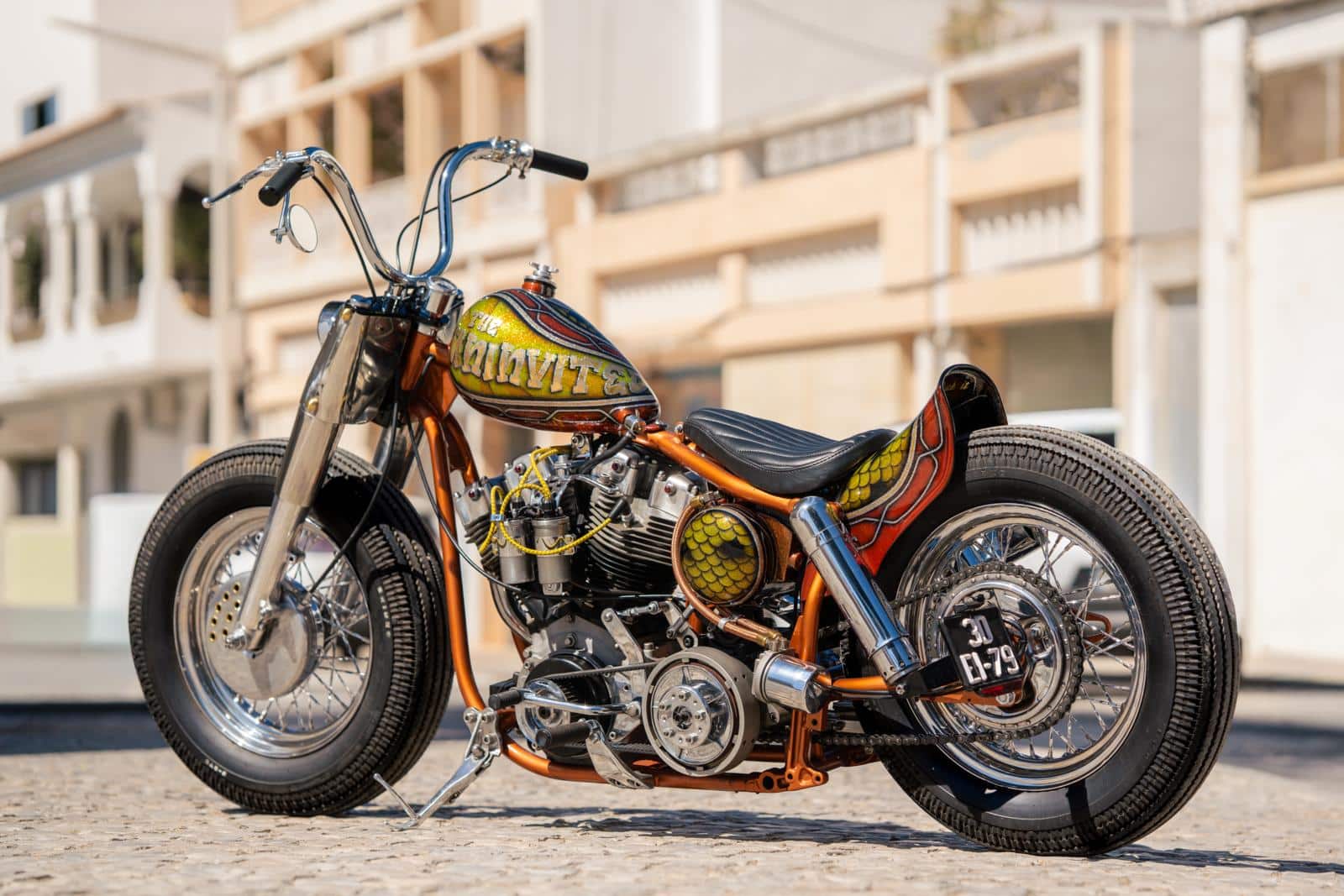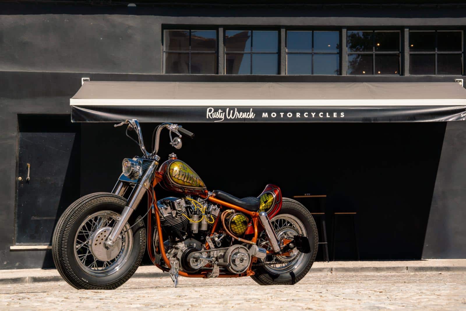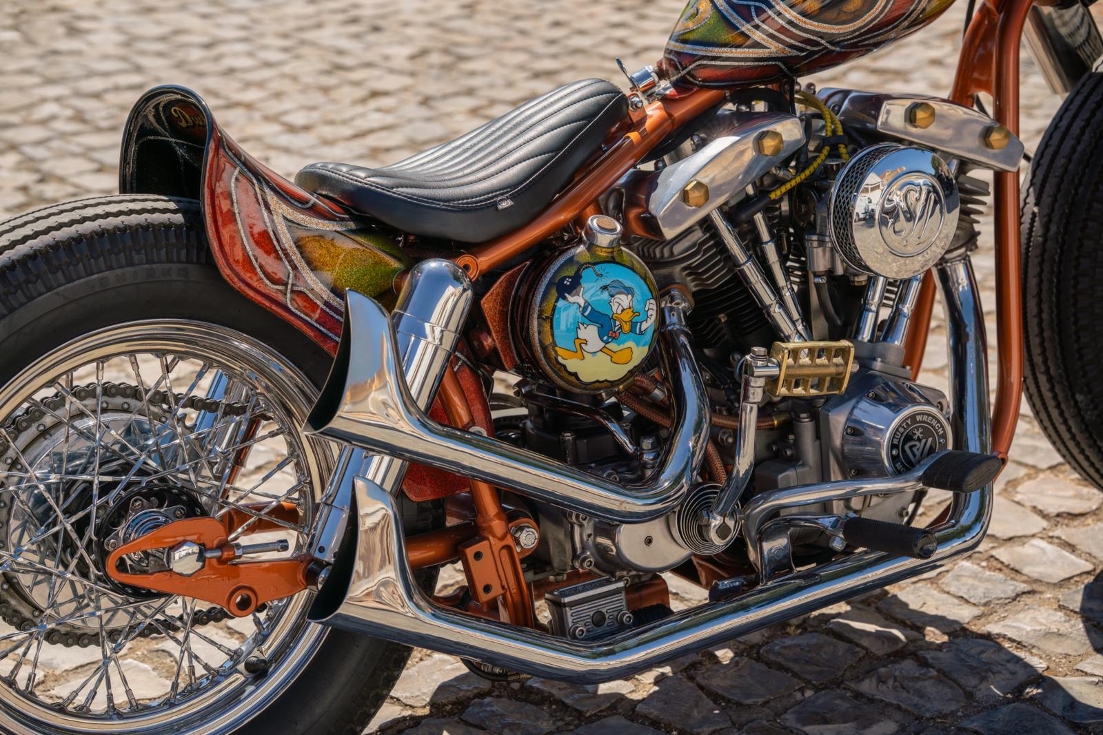 Xiko Correia van het Portugese Rusty Wrench Motorcycles bouwde een Shovelhead die gelijktijdig brult, schittert en scheldt. Een old-school bobber met een Donald Duck-grijns en dito kont, gezegend met een heerlijke overdosis aan karakter.