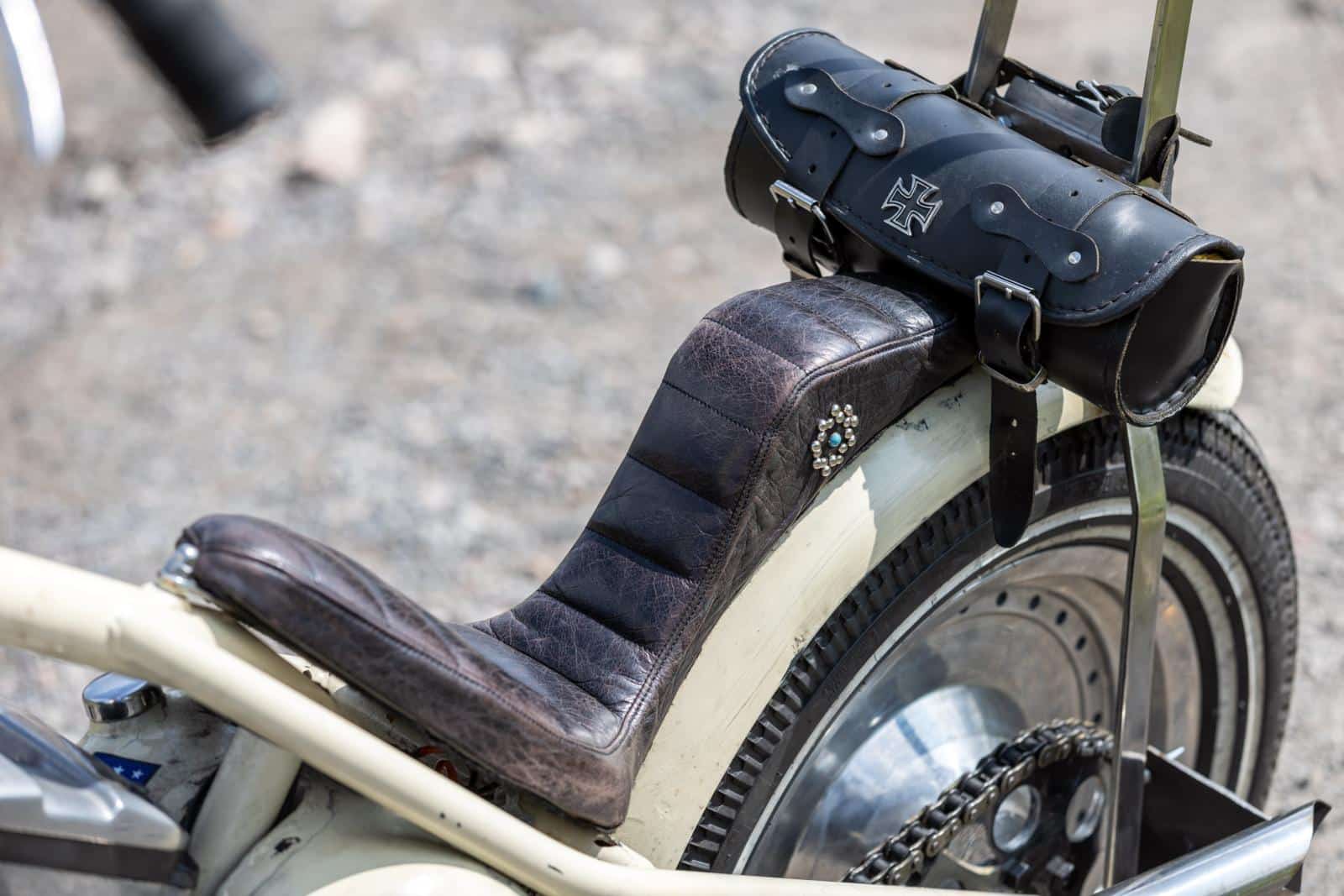 Gedurende de bouw haalde ik de inspiratie om verder te gaan vanuit verschillende hoeken en voor de stijl van het uitlaatsysteem keek in naar het werk van Tony Sundell. Ik ben altijd fan geweest van de sissybar uit plat staal, dus dat was een absolute must. De andere onderdelen zijn vooral parts die ik door de tijd verzameld had om ‘ooit nog eens te gaan gebruiken’. Ik denk dat iedere custombouwer dat wel herkent. Alles bij elkaar ben ik helemaal blij met de manier waarop het uitgepakt heeft en ik hoop nu lekker veel miles te kunnen gaan afleggen met deze chop; Vooral van en naar de grote choppershows in de UK natuurlijk! See ya on the road!