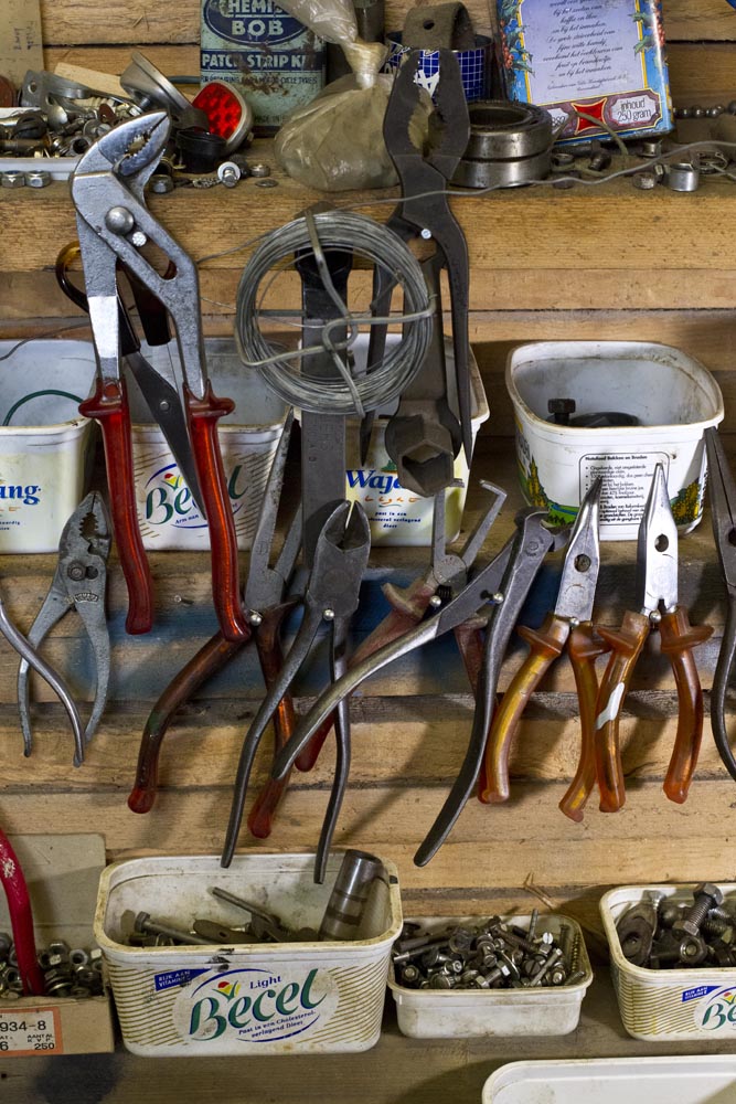 Wie na al het AOW-gesteggel wanhoopt dat je pas op je 67e van je motor een full time ‘job’ kunt maken, moet eens gaan praten met MZ-fan Jan Barsingerhorn (67). Als hij de deur van zijn schuur openslaat, komt de droom tot leven. Een joekel van een porrelschuur, vol MZ’ tjes (dertien!) én onderdelen. Kisten en stellingen vol.