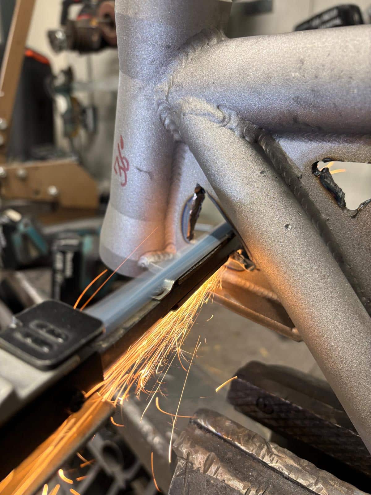 Lekker uitgerust weer volgas 23 uur per dag aan de slag, je moet tenslotte af en toe ook eten. Omdat ik de stijl van Jesse James te gek vind, wil ik een fiets in de NY stijl met een Achterhoekse BCCB twist gaan maken. Omdat het frame qua lijn eigenlijk al te gek is met een 4” strech, besluit ik om hier weinig aan te doen, behalve het te ontdoen van alle lelijke ‘lipjes’ en beugels die wij toch niet gaan gebruiken. Boor