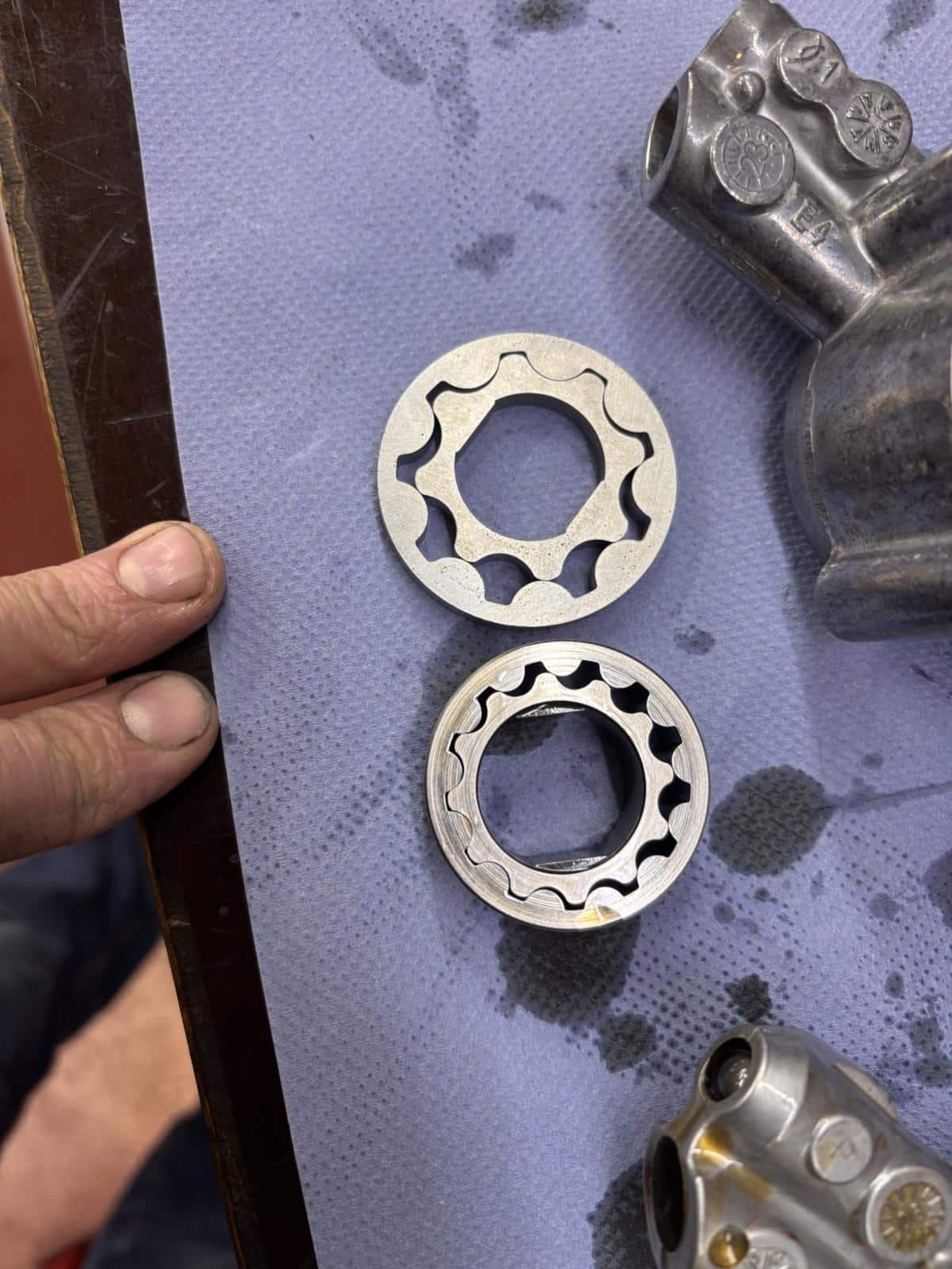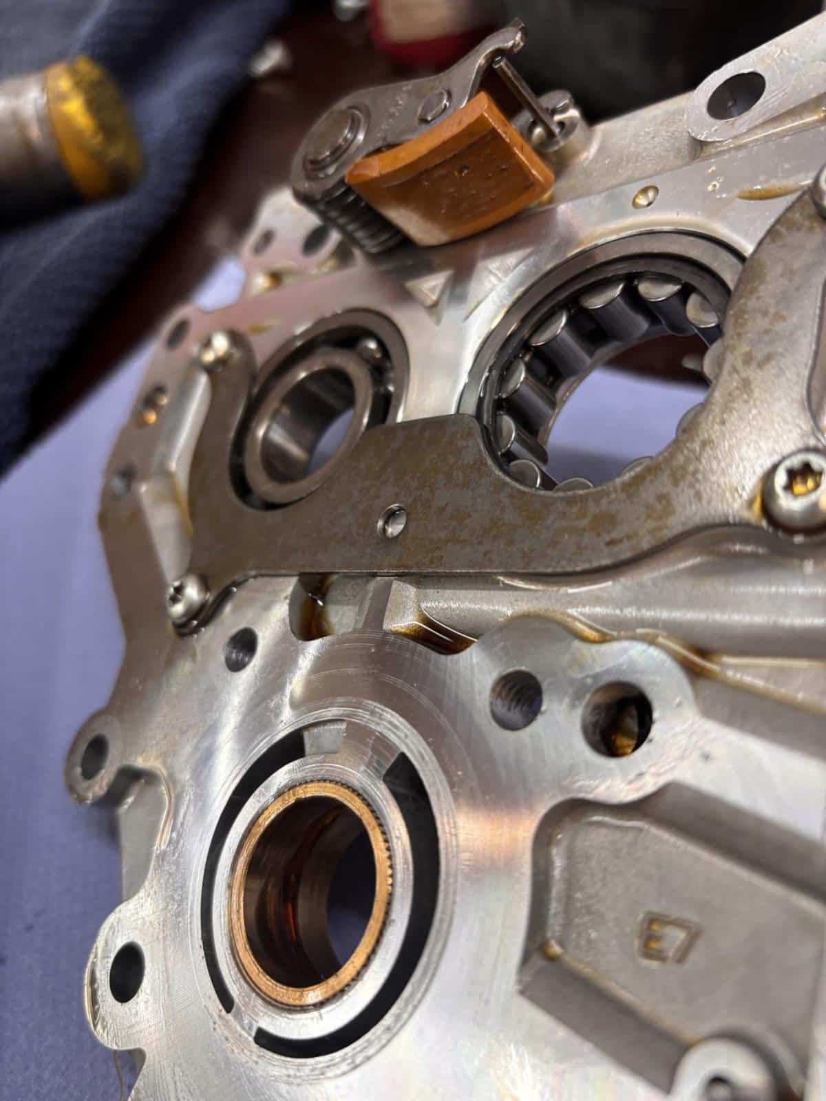 De 2006 Night Train zat precies voor de grote veranderingen bij de Twin Cams. In 2007 kwamen de Softails met een nieuwe zesbak, maar werden er ook in het motorblok wijzigingen uitgevoerd door Harley-Davidson. De grotere veranderingen waren o.a. een langere slag van de krukas, (van een 4” naar 4 3/8”) en daardoor een stijging van de motorinhoud van 88 naar 96 ci. Het tweede wat rigoureus werd aangepakt was alles wat in de cam gallery zit. Allereerst kwam er een oliepomp met meer volume, zowel qua aanvoer als retour. Een grotere retour is sowieso altijd goed bij een dry sump motor, want je wil het carter leeg maken. De grotere aanvoerkant was nodig vanwege de verbeterde cam support plate. In de nieuwe cam support plate, nu geen rollagers meer voor de twee nokkenassen, maar het nieuwe glijlager systeem. Dit is eigenlijk gewoon een mooi gehoond gat met een gaatje, waar oliedruk op staat. Dat is zoveel keer sterker in deze toepassing dan een lager, zolang er maar mooie schone olie langs komt. Ook zijn de kettingen en de spanners aangepast. De oudere Twin Cams hebben mechanische spanners met een veer, de nieuwere hydraulische. De hydraulische spanners hebben zich inmiddels bewezen en gaan minstens eens zo lang mee als de mechanische. Aan de andere kant van de nokkenassen vlak bij de krukas zitten twee naaldlagers en deze zijn bij het nieuwe Twin Cam model ook een maatje groter geworden qua diameter. Dit houdt in dat de kracht per rolletje lager wordt en de boel dus sterker is. Dit is niet zomaar te veranderen uiteraard want dan moet je grotere gaten in het carter gaan maken. Maar de rest is wel te updaten.